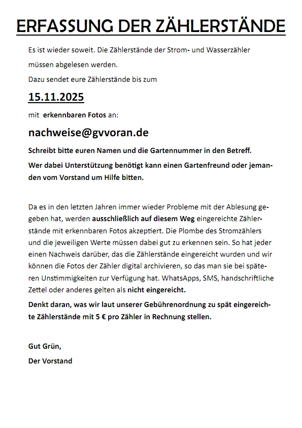 Ablesung der Zählerstände 2025 Posted On Oktober 24, 2025 Related Posts Herbstputz 2024 Cannabis im Kleingarten Sommerfest 2025 About The Author Karsten Stellvertretender Vorsitzender Mein Motto: "Der Clown ist die wichtigste Mahlzeit des Tages"